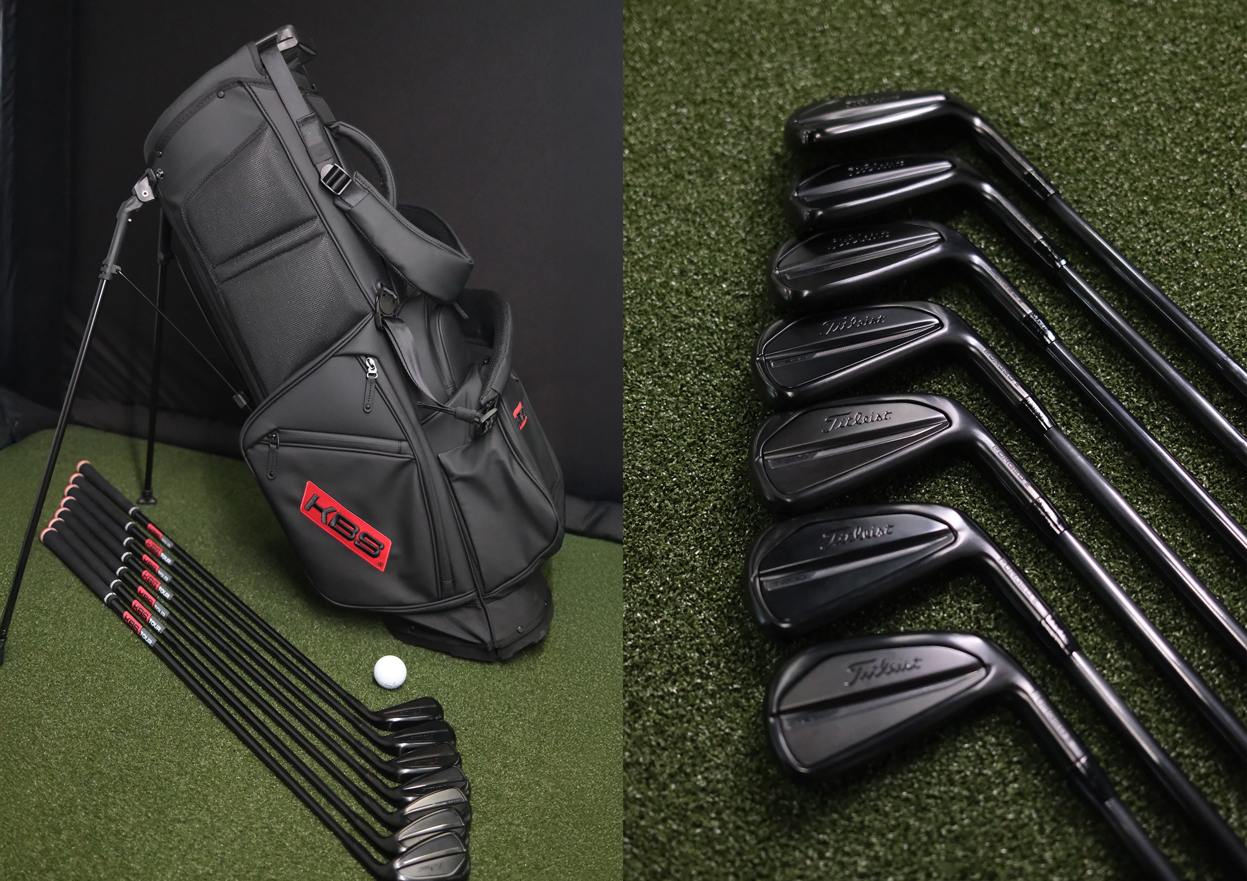 A full set of Black KBS Custom Tour Series shafts fitted with Black Titleist Heads. All packaged in a KBS Staff Bag 3.0.